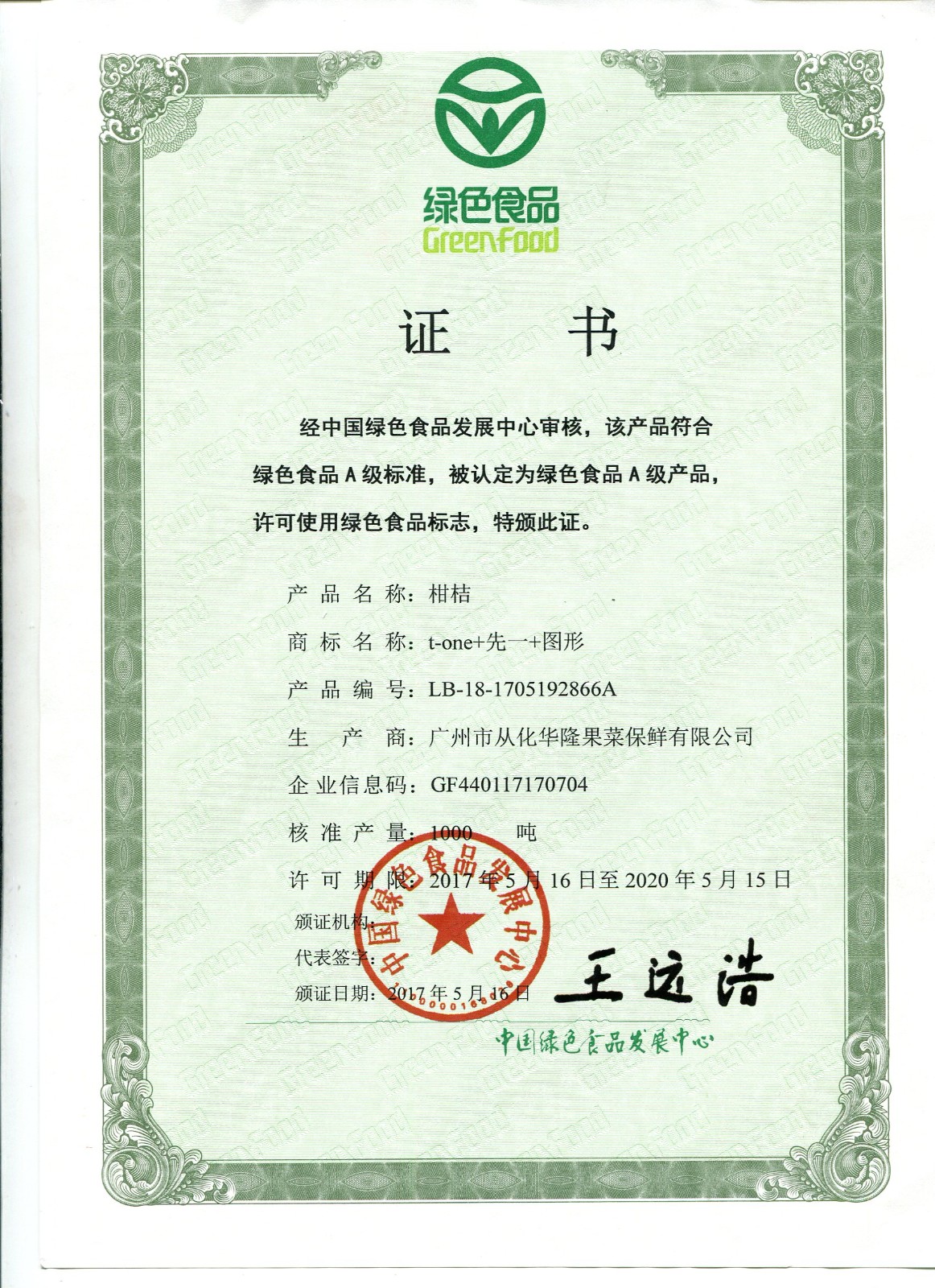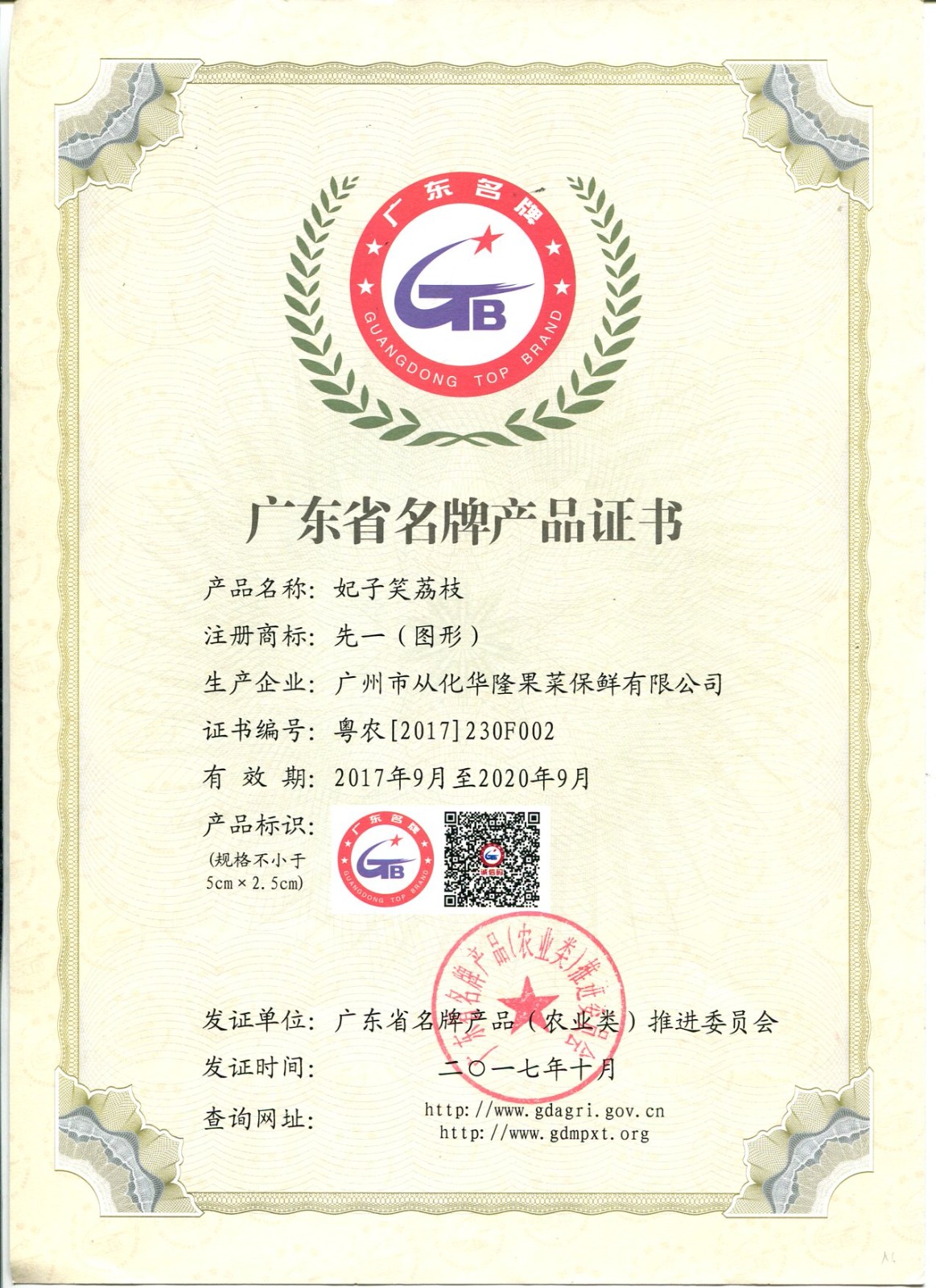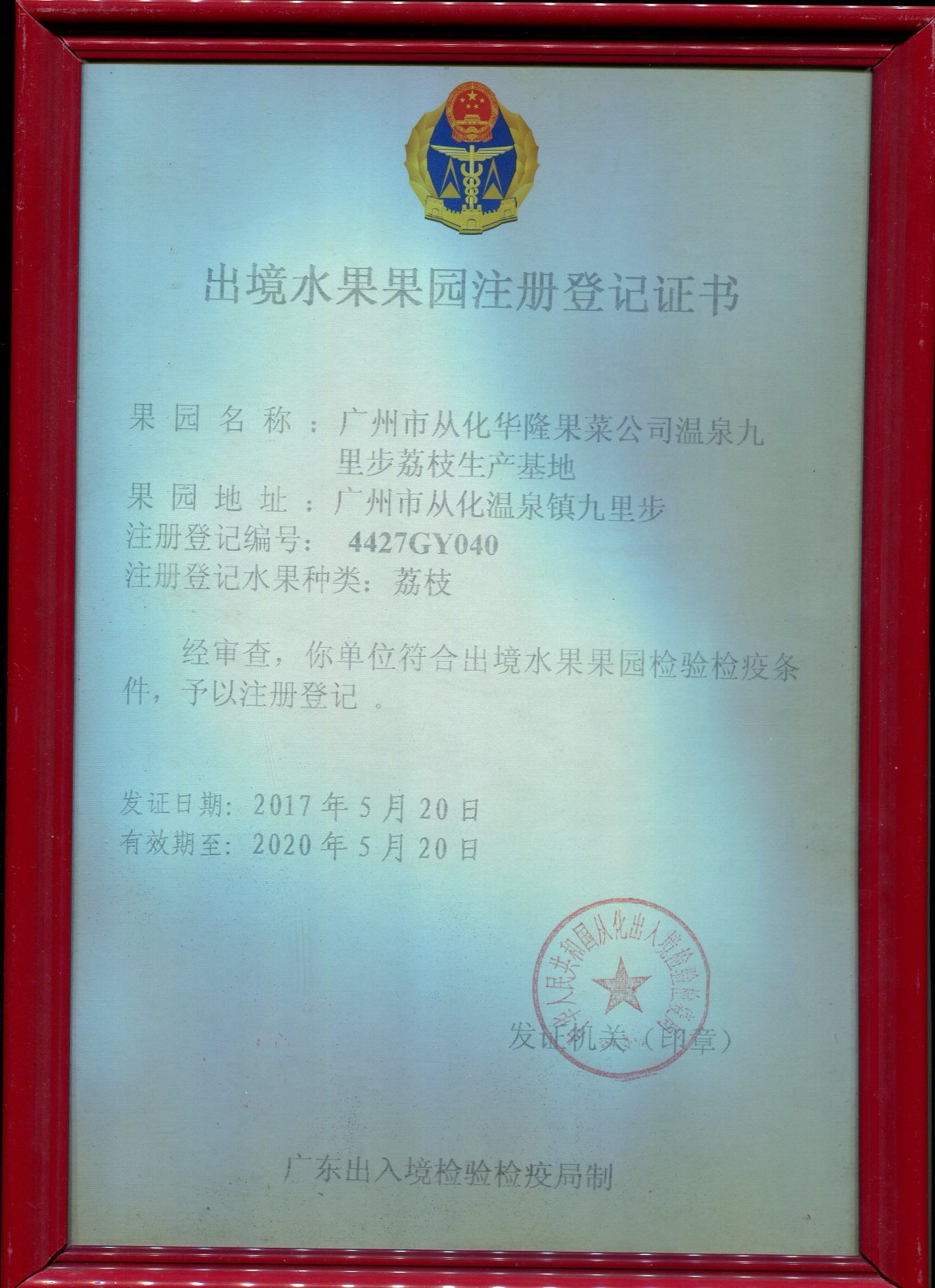 荔枝出境水果注册登记证书