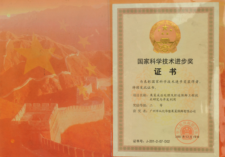 国家科学技术进度奖证书